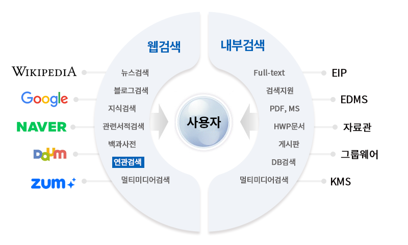 - Web검색과 기업용 통합검색이 하나로 된 검색엔진